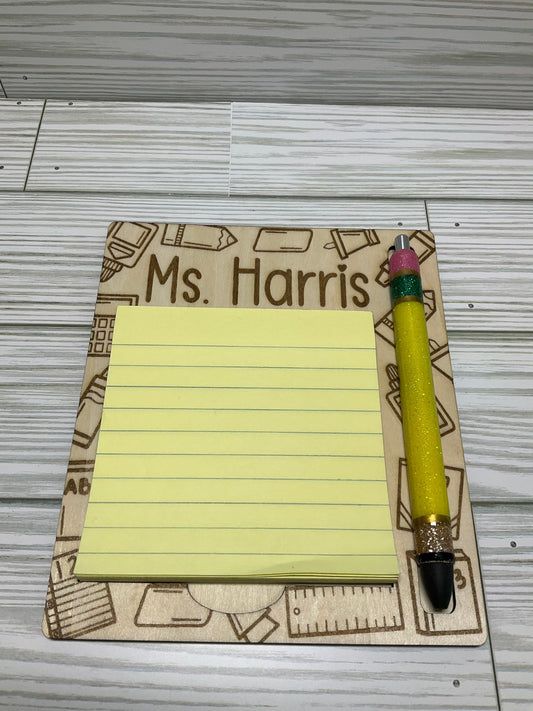 Personalized Engraved Pen & Post-it Note Holder – Teacher Desk Organizer Gift