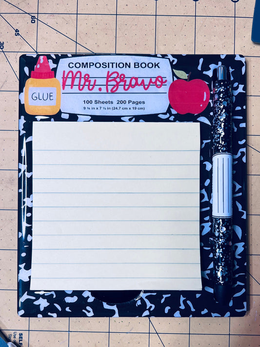 Personalized Composition Post It Note and Pen Holder | Teacher Gifts | Post It Note and Pen Holder | Classroom Supplies