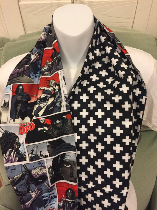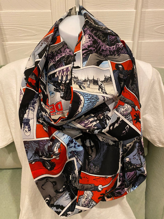 Walking Dead Infinity Scarf - Handmade Print Accessory | Zombie Apocalypse Fashion | Unique Undead Gift