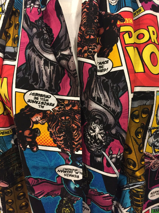 Whovian-Inspired Comic Strip Infinity Scarf | Cozy Flannel Fall Fashion Accessory for Sci-Fi Fans & Handmade Gifts