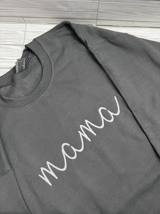 Charm in Every Stitch: Lowercase 'mama' Script Embroidered Tee - Mama Appreciation | Embroidery for Stylish Mom Tee - Unique Mama T-Shirt
