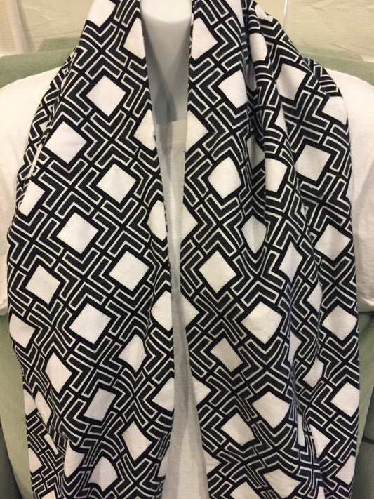 Chic Winter Elegance: Black Diamond Flannel Infinity Scarf - Handmade Fashion Accessory for Stylish Neckwear