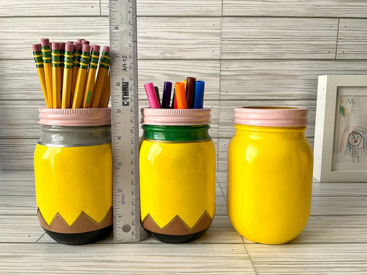 Chic 5β Glass Jar Pencil Holder - Ideal Teacher Gifts, Stylish Teacher Pen Organizer, Yellow Pencil Storage