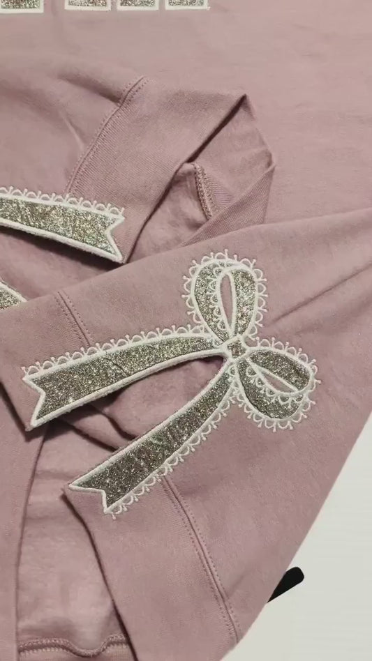 Embroidered Lace Glitter Bow Sweatshirt: Side Appliqué Design