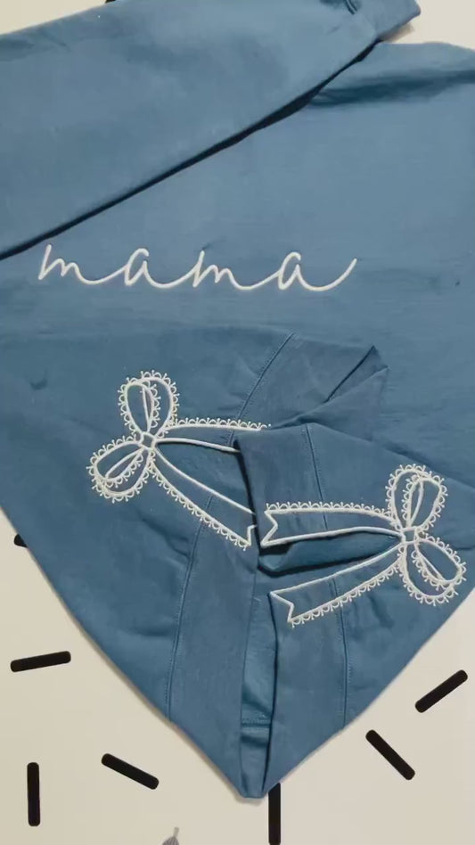 Embroidered Mama Sweatshirt: Classic Side Bow Design