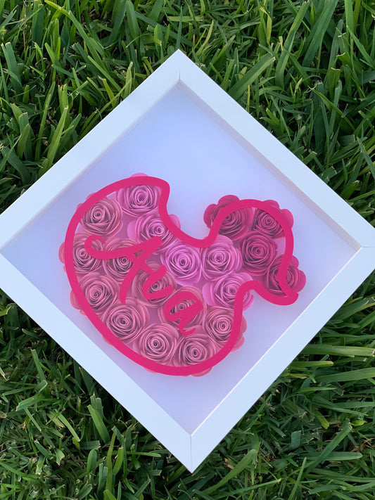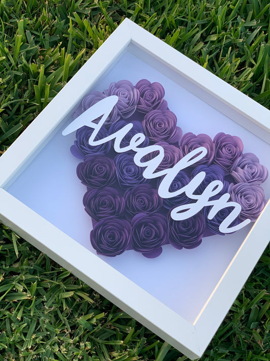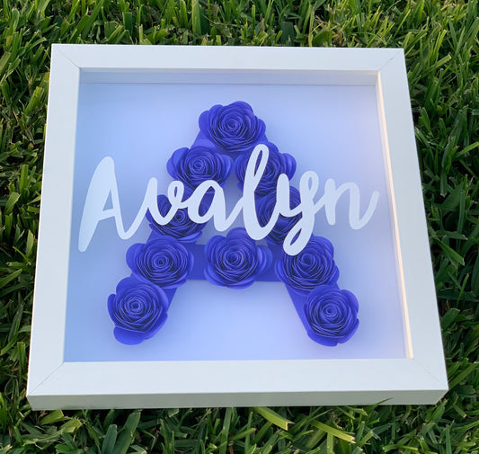 Blossoming Identity: Personalized Initial & Name Flower Frame - Paper Shadow Box for Kid's Room, Nursery Decor Delight