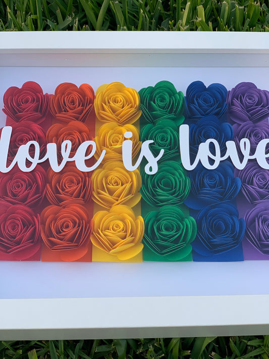 Express Love: LGBTQ Pride 3D Flower Shadow Box - Love is Love, Rainbow Decor with Vibrant Paper Flowers