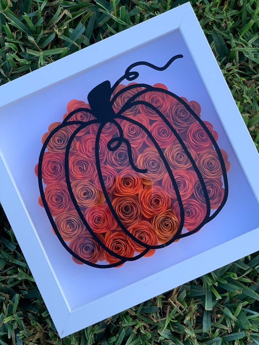 Autumn Elegance: Fall Pumpkin Floral Shadow Box - 3D Wall Decor with Paper Flowers, Unique Autumn Flower Shadow Box