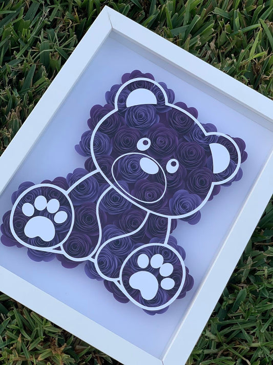 Bear Hugs in Bloom: Flower Bear Floral Shadow Box - 3D Wall Decor with Paper Flowers, Adorable Flower Shadow Box