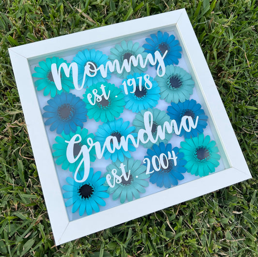 Generational Love in Bloom: Mommy and Grandma Floral 3D Wall Decor - Unique Flower Shadow Box Gift