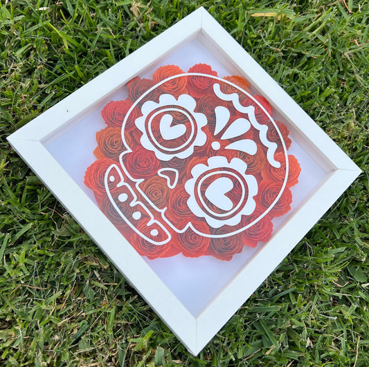 Colorful Día de Muertos Floral Wall Hanging - Handcrafted Shadow Box, Day of the Dead Art