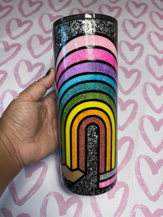 Custom Glitter Single and Double Rainbow Pencil Tumbler | Rainbow Pencil Tumbler | Gift Ideas for Teacher | Teacher Appreciation