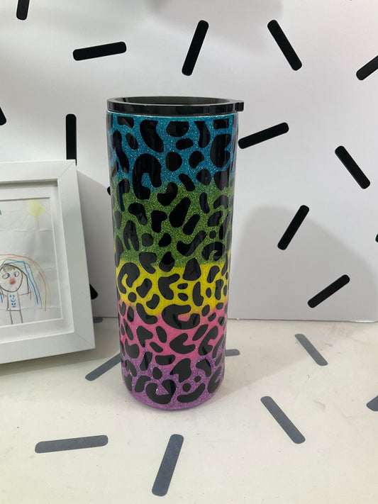 Leopard Glitter Rainbow Tumbler | Gifts | 30oz Fatty Tumbler Stainless Steel Cup w/ Straw | Leopard Design