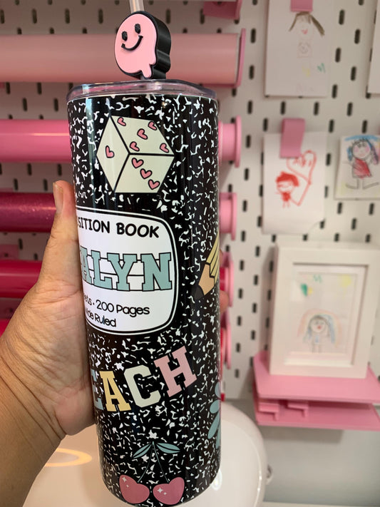 20oz Stainless Steel Composition Doodle Custom Tumbler with Straw Topper – Personalized Teacher Gift