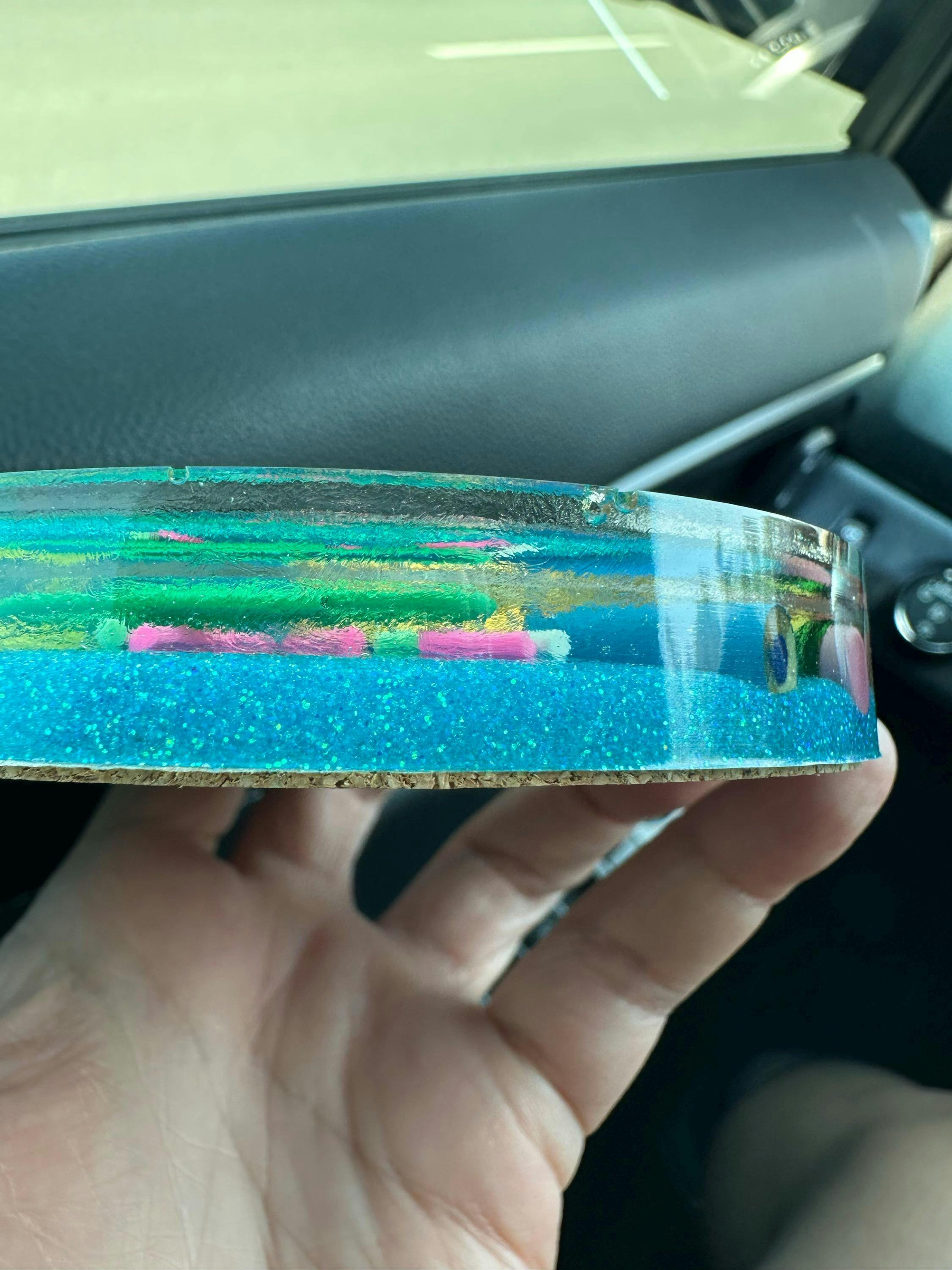 Gift with confidence, and keep these glittering resin coasters beautiful for a long time! Contact us with any questions before ordering. 🌈💖 #TeacherGift #HandmadeCoasters #ResinArt